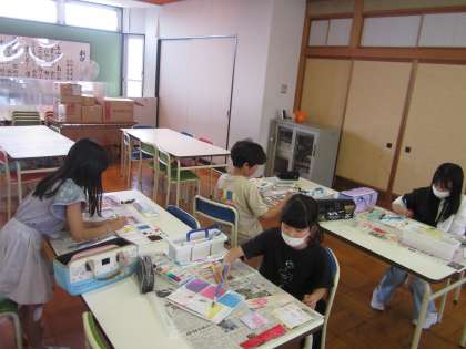 色の組み合わせや塗り方を工夫し、自分の心の「もよう」を描きました。「楽しい」「嬉しい」「悲しい」「悔しい」等、色々な場面を思い出し、工夫して描いていました。