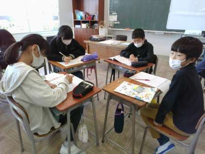 家庭科では、野菜を油でいためる調理に挑戦します。今日は、調理の計画を立てました。野菜の切り方やいためる順番など、ポイントを念入りに確認していました。実際に作るのが楽しみです。