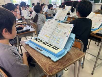 音楽の学習で、「せんりつづくり」をしました。自分で考えた旋律を鍵盤ハーモニカで演奏して楽しみました。
