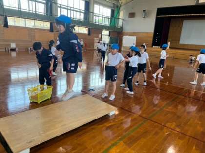 自分の目標に向かって、いろいろな技に挑戦しています。ボードを使って、高く跳ぶ感覚も養っています。
