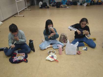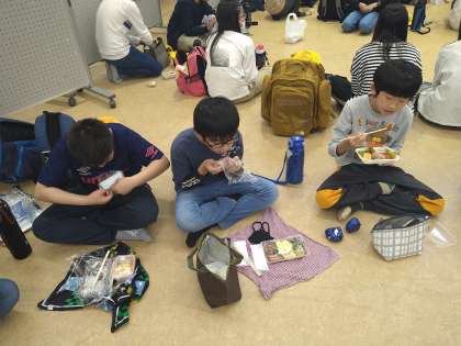 お待ちかねのお弁当タイムです。美味しく食べています。