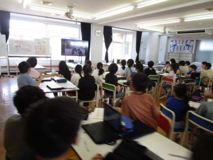 また、今日から「走り幅跳び:ジャンピング『ん』」!」という学習に取り組み始めました。世界チャンピオンの跳躍をみて驚く5年生でした。記録が伸びていくのが楽しみです。