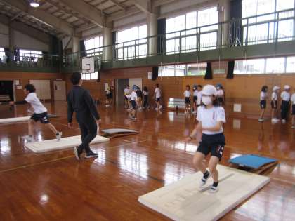 その後、走り幅跳びの踏切の練習をしました。高く、ふわっとジャンプできたかな?