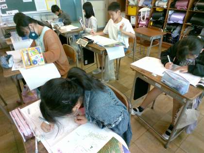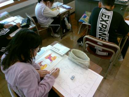社会では富山県のまとめに入っています。地形、市町村、産業、交通など調べたことを白地図にまとめています。自分でクロムブックをつかってもっと調べたい、友達と協力したいと意欲的に取り組んでいます。