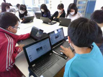 縦割り班のメンバーや目当てを紹介する掲示をクロームブックで作りました。一年間仲良く活動できるようにという願いをこめて作っています。完成が楽しみです。