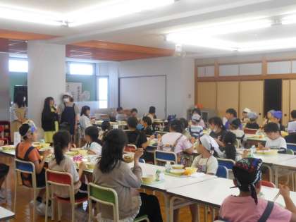 今日からランチルームを使って「色団毎の縦割り会食」が始まりました。今日は赤団の1〜4班です。
