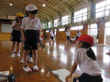 2年生:新体力テスト:6月12日(月) 公開日 2023/06/13 更新日 2023/06/13 2年生の部屋 新体力テスト「握力」「長座体前屈」の記録会をしました。よい記録が出るとみんなで喜んだり、「頑張れ」と励ましたりしていました。立ち幅跳びの練習もしました。どの種目も、1年生の時より力強さが見られ、記録も伸びています。