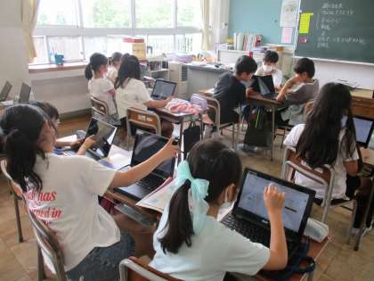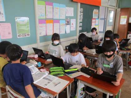 自分たちが使っている水は浄水場できれいにされているのを知り、どうやってきれいになっていくのか調べました。教科書、ホームページ、動画など自分に合う調べ方を選び、スライドにまとめました。