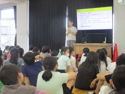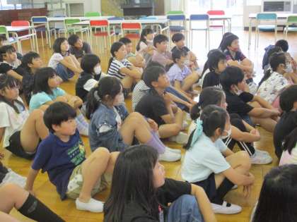 来月に行われる宿泊学習に向けて学年で話をしました。4つのチャレンジに挑戦する宿泊にするために、真剣に話を聞きました。これから自分の目当てや役割分担を決めていこうと思います。