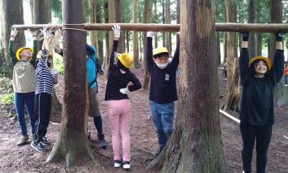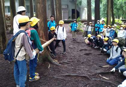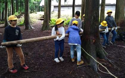 午後からは「森の遊び場づくり」をしました。所の方の話を聞いて、活動スタートです!