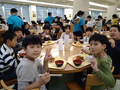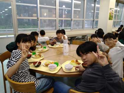 夜ご飯の時間です。たくさん動いたのでお腹ペコペコです。