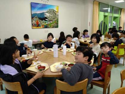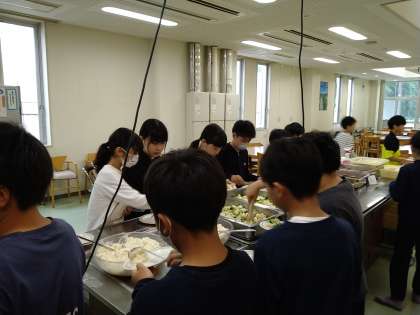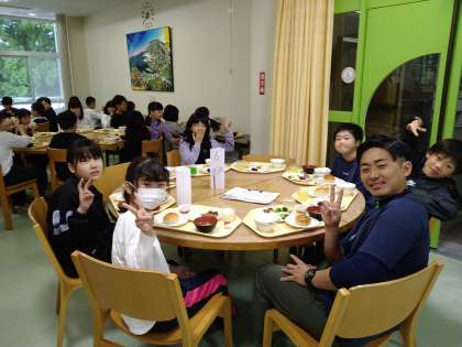朝ごはんの時間です。食堂を利用するのも3回目なので、手際よく準備できています。