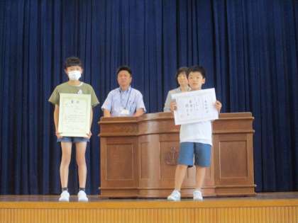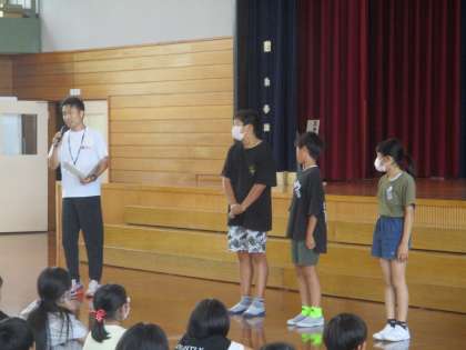 今日の新保っ子タイムは、受賞伝達式と県の陸上大会の選手紹介がありました。がんばる新保っ子をみんなで応援しました。