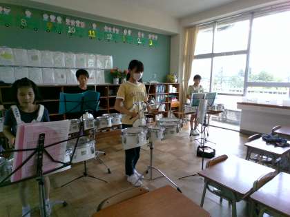 新しいメンバーも加わり、今年度は19名で活動しています。楽器を決めたり、基礎練習をしたりし、先週から新しい曲の練習を始めています。今年度は、昨年度以上にみんなの前で演奏することができるといいなと思います。