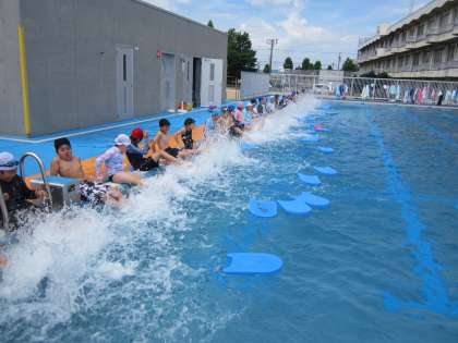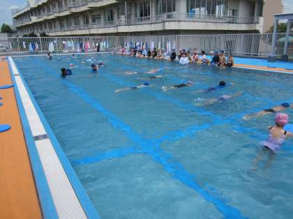 4年生のプール開きをしました。バタ足競争やロケットチャレンジなどをして楽しみながら学習しました。気温も上がってきたので水が気持ちよかったようです。「次はいつですか?」とこれからのプールも楽しみにしていました。