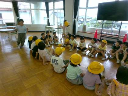 レクリエーションでは、お誕生日の友達に質問タイム、はんかち落としなどをしました。