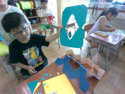 子供たちは、色々な折り方があることに気が付いたり、自然と友達の作品を見て教え合ったりしていました。