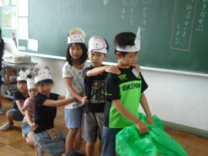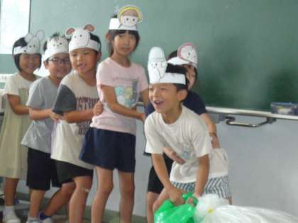 1年生:「国語科 おおきなかぶ」:7月10日(月) 公開日 2023/07/10 更新日 2023/07/10 1年生の部屋 今日は、2グループが「おおきなかぶ」の音読劇の発表会を行いました。グループで役割を分担して練習してきた成果を発表しました。たくさん練習したので、セリフもばっちり覚えて演じていました。「緊張した〜」「楽しかった!」「見ているのがおもしろかった!」と笑顔で振り返っていました。