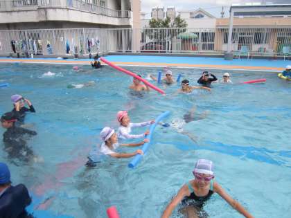 今日は、1学期最後ということで、自分に合ったコースで泳ぐ練習をした後、自由時間を楽しみました。泳ぎの練習をしたり、浮いたりと、思いっきり遊びました。夏休み中も、学校のプールを開放している日があるので、ぜひ来てくださいね。