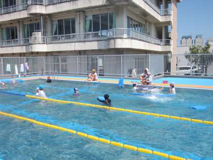 今日はプールの開放日・図書館の開館日でした。プールには30名ほどが来て、遊んだり、泳ぎの練習をしたりしていました。また近所の友達を誘って泳ぎに来てくださいね。