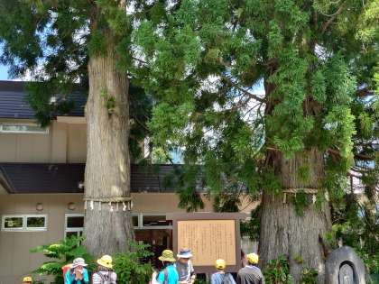 バスは最初の目的地、美女平に到着しました。大きくて太い「美女杉」がありました。