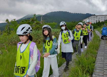 今日宿泊する立山壮に荷物を置いた後、弥陀ヶ原の散策に行きました。たくさんの高山植物に出会うことができました。カルデラ展望台にも行きましたが、霧がかかっており、何も見えませんでした。