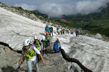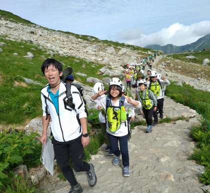 心強いガイドの佐伯さんとも合流し、一ノ越を目指します。途中、雪渓もありましたが、一歩一歩力強い足取りで登っています。