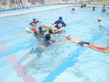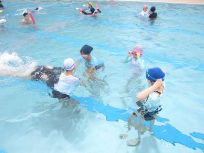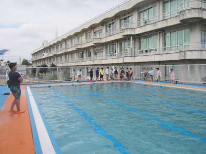最後のプールだったので、水慣れをした後、泳いだり、浮いたりと、思う存分自由時間を楽しみました。最後に、今年度も安全に水泳学習を行うことができたプールにお礼を言い、学習を終えました。