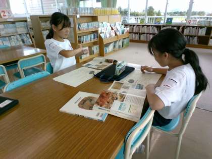 図書室の本を使ったり、クロームブックを使ったり、真剣な表情で取り組んでいます。