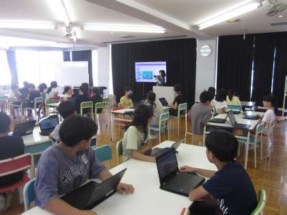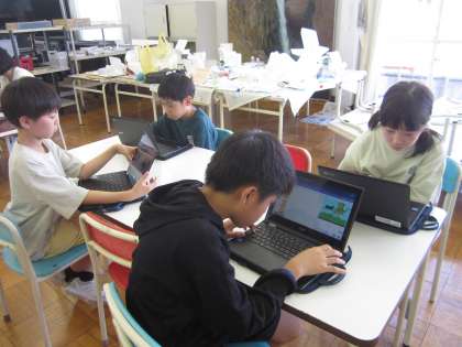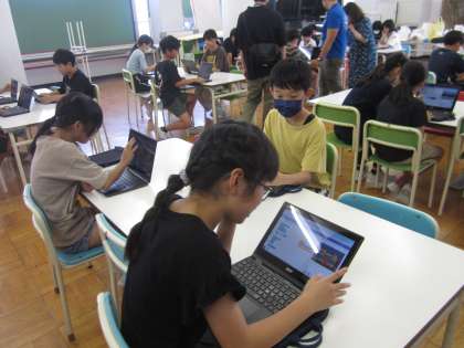 今日は、殿城先生に来ていただき「スクラッチ」を使ったプログラミング学習を行いました。昨年度「ビスケット」を使っているので、子供たちは操作に慣れているようでしたが、学校応援ボランティアの方にも助けていただきながら学習を進めました。