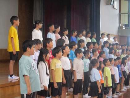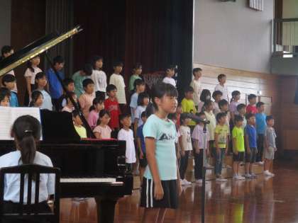 4年生にとって今日は1回目の本番でした。来週に迫った区域音楽会に向けて校内発表を行いました。2学期に入り毎日練習を積み重ねてきた4年生。本番前は緊張した顔をしていましたが、ステージに立つと、堂々と笑顔で歌うことができました。聴いていた他の学年の人から温かい言葉をたくさんもらって、とても嬉しい気持ちになりました。これを励みにあと1週間がんばります!