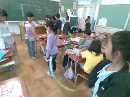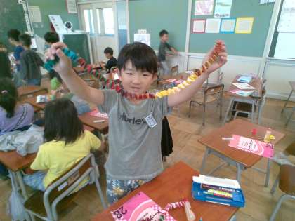 つくり始めると、色を変えたり、友達とつないだり、教室に飾りたくなったり、、、、いろいろなアイディアが出てきました。