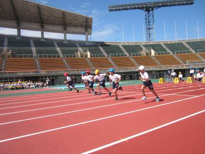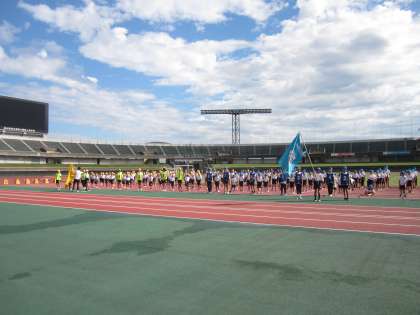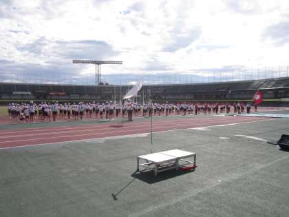 県総合運動公園陸上競技場で行った予行の様子です。