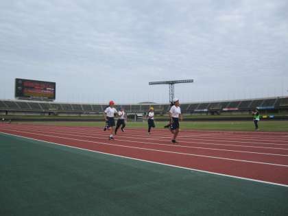 6年生は、自分たちが満足できる運動会にしたいという思いで、競技も応援も係活動も全力で取り組みました。写真は競技の様子です。