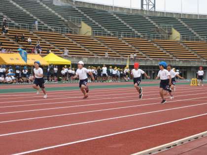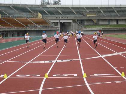 3年生は50メートル走、4年生は80メートル走でした。スタートの仕方、腕の振り方を意識して、最後まで諦めず、精一杯走りました。