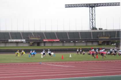 中学年の団体競技「台風の目」!3・4年生のペアで力を合わせて、取り組みました。内側を小さく回ったり、外側を大きく回ったりと、各チーム工夫して、一生懸命に駆け抜けました。各団、接戦で順位が入れ替わり、とても盛り上がりました。