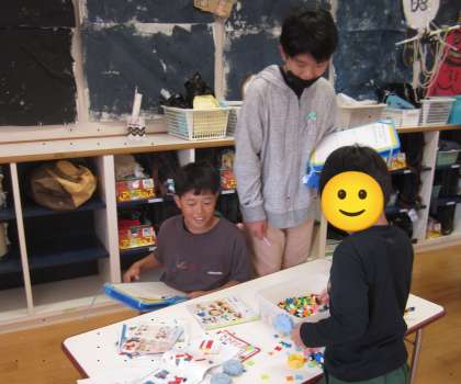 5年生は、総合的な学習の時間に「共に生きる〜あったかハートプロジェクト〜」の学習をしています。そのうちの1つとして、年長さんと一緒に遊ぶ計画を立てています。