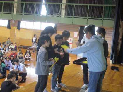 また、特別賞の発表もありました。休み時間に熱心に調べ学習をしていた4人です。すてきな姿を見せてくれました。