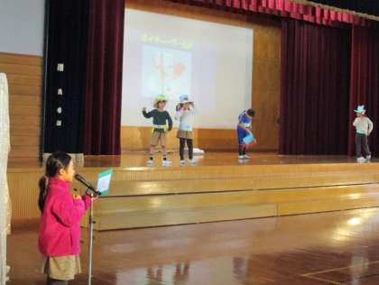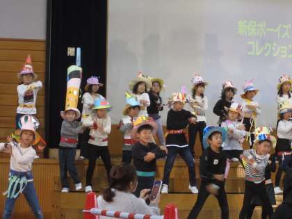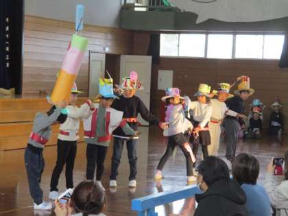 自分だけの すてきなぼうしを身に付け、変身した姿を見てもらおうと、ファッションショーを開きました。緊張した面持ちでしたが、自分の番になると堂々とランウェイを歩いていました。最後のダンスは、会場と一体となって盛り上がりました。元気いっぱい、笑顔いっぱいの2年生でした。