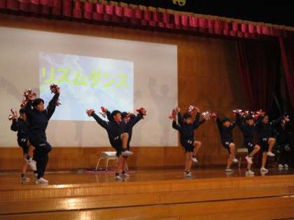 昨日の最後の練習では、とても緊張した様子で、表情も硬かったのですが、今日は全員が底力と集中力を発揮して頑張っていました。朝や休み時間にたくさん練習した大技も決まりました!