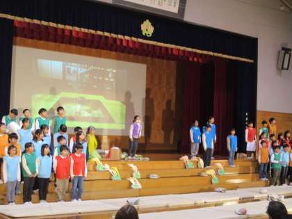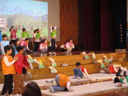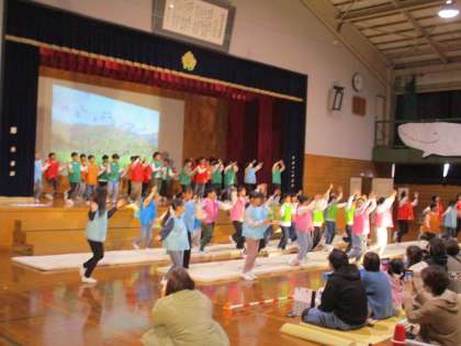 3年生は、国語科で学習した「三年とうげ」の発表をしました。劇の中に、マット運動やダンスを取り入れ、元気に発表することができました。