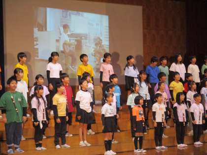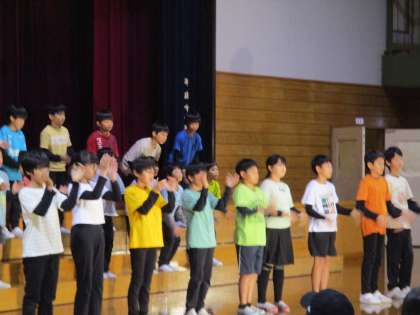 「クラッピングファンタジー」では、音楽の時間に学習したことを生かして、たたき方やポーズを工夫しました。最後の「チャレンジ」はこれからの4年生の挑戦が続きますようにと願いながら心を一つにして歌うことができました。4年生にとっては初めての大勢のお客さんがいる学習発表会でした。この経験を今後の学校生活にいかしていきたいです。