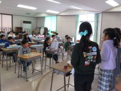 今日は、色団毎に発表しました。みんなで一緒に歌いながら、発表会をもりあげていました。