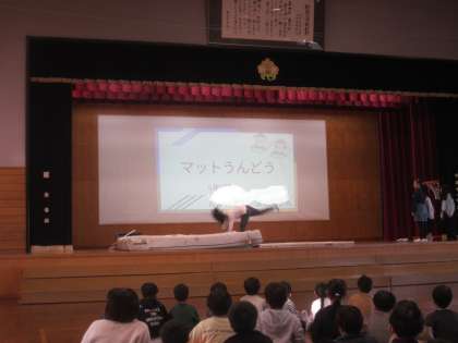 今日の新保っ子タイムに、放送委員会の企画「得意なこと発表会」が開催されました。5年生からは、リフティングやマット運動、ダンスを披露しました。