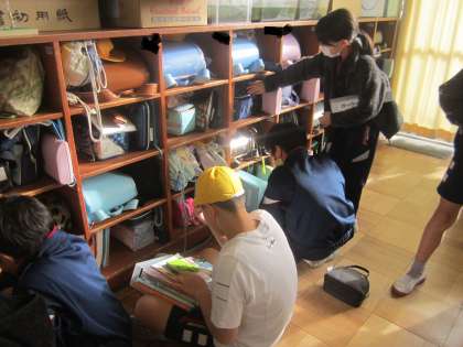 家庭科の学習では、整理・整頓の仕方を学びました。そこで、机の中や教室のロッカーをきれいにしました。その後、学校内の汚れている場所を探しに行きました。学期末に向けて、大掃除をする予定です。