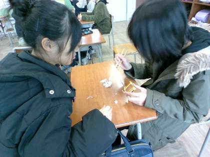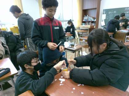 理科の実験で、電熱線に電流を流すと発熱するかを調べました。するする発泡スチロールが切れていき、発熱していると分かりました。身の回りにも、ワッフルメーカーやアイロンなど、電気を熱に変えている道具はたくさんあると発見していました。