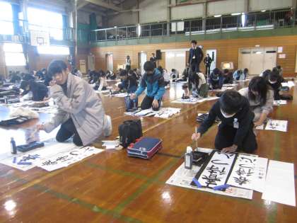3学期が始まりました。子供たちは、いよいよ卒業を迎える3学期が始まり、引き締まった表情をしていました。始業式の後の書き初め大会では、静かに黙々と筆を進めていました。