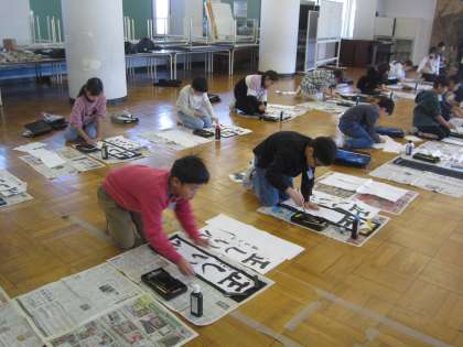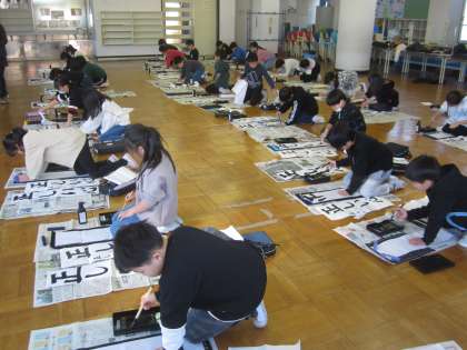 書き初め大会を行いました。冬休み中に練習した成果を発揮できるよう、真剣に書く様子が見られました。