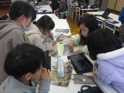3年生:「総合:新保安全博士になろう」:1月24日(水) 公開日 2024/01/25 更新日 2024/01/25 3年生の部屋 3学期の総合では、新保安全マップをつくっています。2学期に調べた危険なところを基にどの写真をマップに載せたいか、どんな言葉で紹介したいかについて、グループで話し合っています。