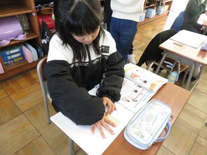 2年生:長さをはかろう:2年生 公開日 2024/01/31 更新日 2024/01/31 2年生の部屋 「あた」や「ひろ」等、体の一部を使って長さをはかることを知り、一体、何cmなのか、竹ものさしではかりました。 手を広げた長さ「ひろ」は、30cm竹ものさし4本分あり、120cmありました。4本分も並べて使うことは大変なので、100cmの竹ものさしを使うと簡単にはかることができました。 100cm=1mを習い、いろいろな場所をはかって、メートルを使って長さを表しました。